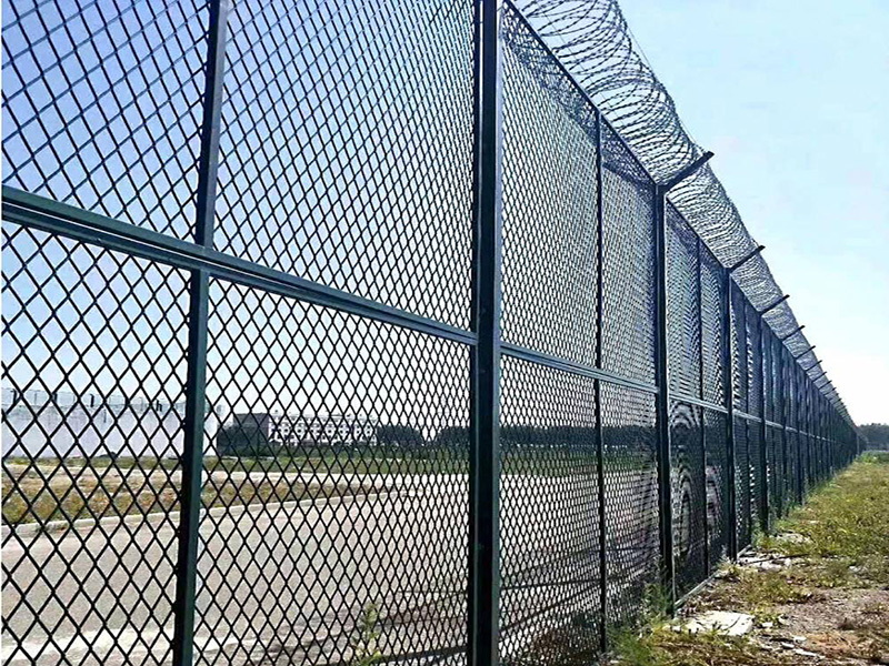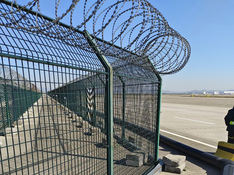 機場護欄網(wǎng)又稱作“Y型安全防御護網(wǎng)”,由Y型支架立拄,加強型焊接網(wǎng),安全防盜連接件和熱鍍鋅刀片刺網(wǎng)組成,是強度和安全防御性級別很高的圍界護欄網(wǎng)產品。被廣泛應用在機場、軍事基地等高安全場所。機場護欄網(wǎng)的突出特點就是美觀實用、安全性高、防攀爬能力好,網(wǎng)體連接方式采用特制SBS緊扣件,有效防止人為的破壞性拆卸,橫向四道折彎加強筋,使網(wǎng)面強度顯著增加。